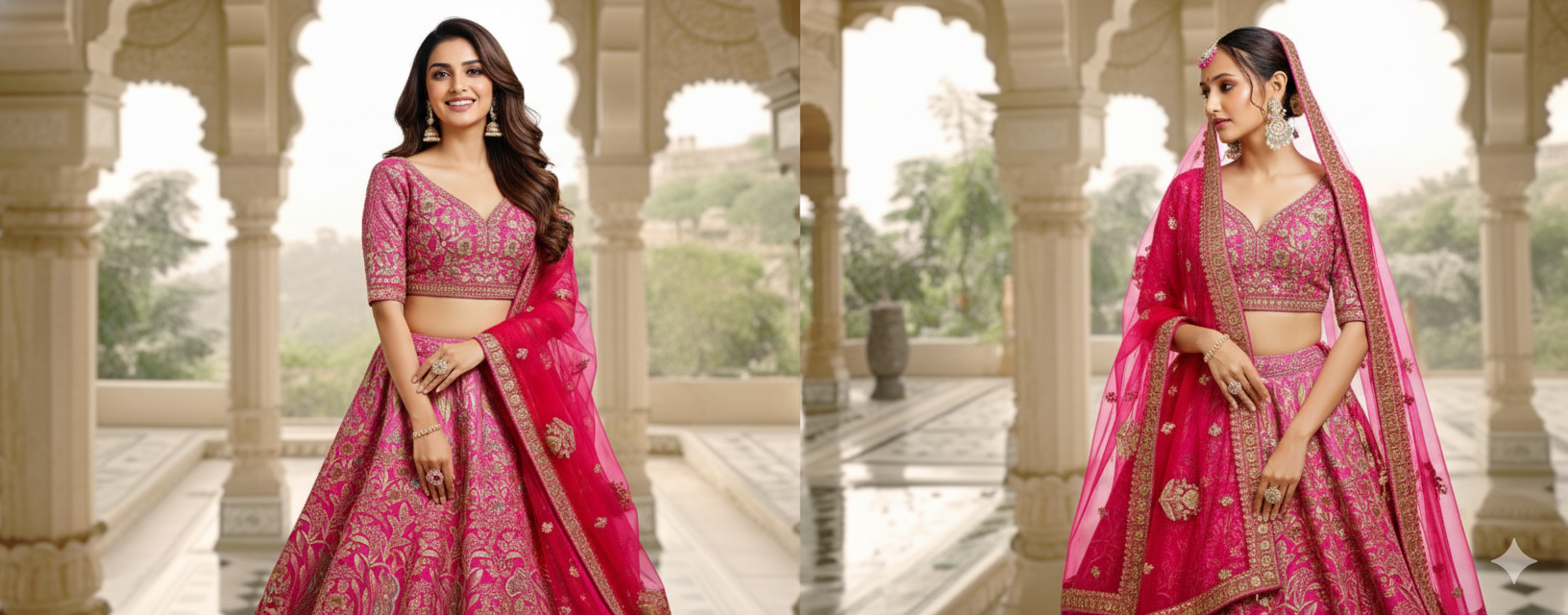 Magenta Heavy Embroidered Bridal Lehenga Set – By Rishtey Hai
