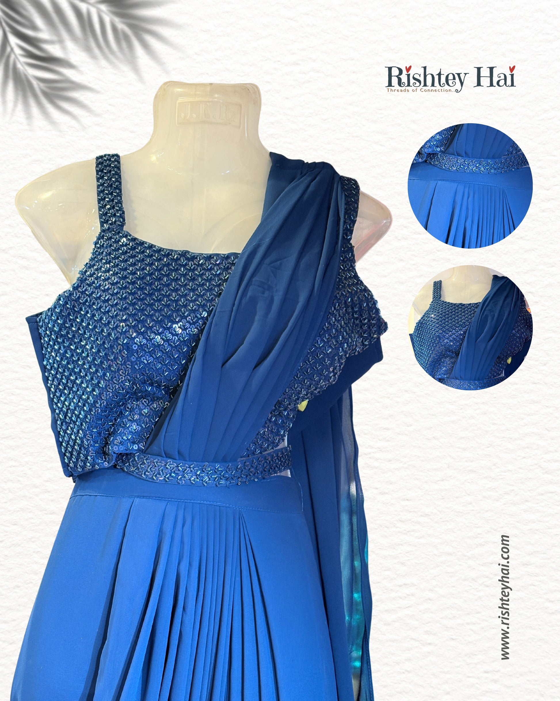 | Product Name | Royal Blue Sequin Draped Saree Gown Set |